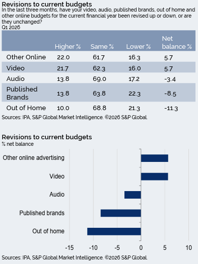 Publishing brands likewise saw a decline in net revisions to marketing budgets of -8.5%, down from -6.5% in the previous quarter. This is the lowest net balance recorded for the media channel since Q4 2024.
