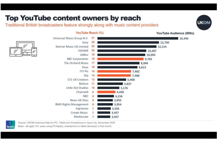 Additionally, data from UKOM shows how important established ‘broadcaster’ and media channels are in delivering reach on YouTube. YouTube is not a controlled environment; it requires media planners to determine what is viable.