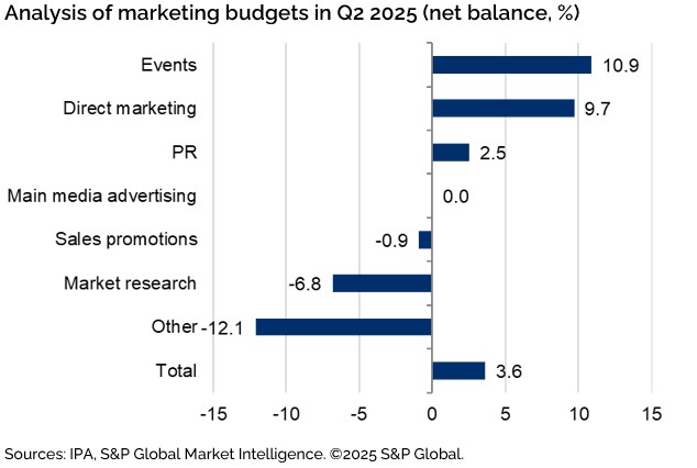 In contrast, main media budgets stayed flat for the second consecutive quarter. This follows contractions in main media budgets in Q4 2024 and Q1 2025.