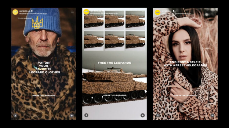 When Ukraine was denied Leopard 2 tanks at a crucial Ramstein meeting, Bickerstaff recognised an immediate opportunity. Working with the Ministry of Foreign Affairs, it conceived, created, and launched #FreeTheLeopards in a single day – asking people worldwide to share photos in leopard print to pressure world leaders.