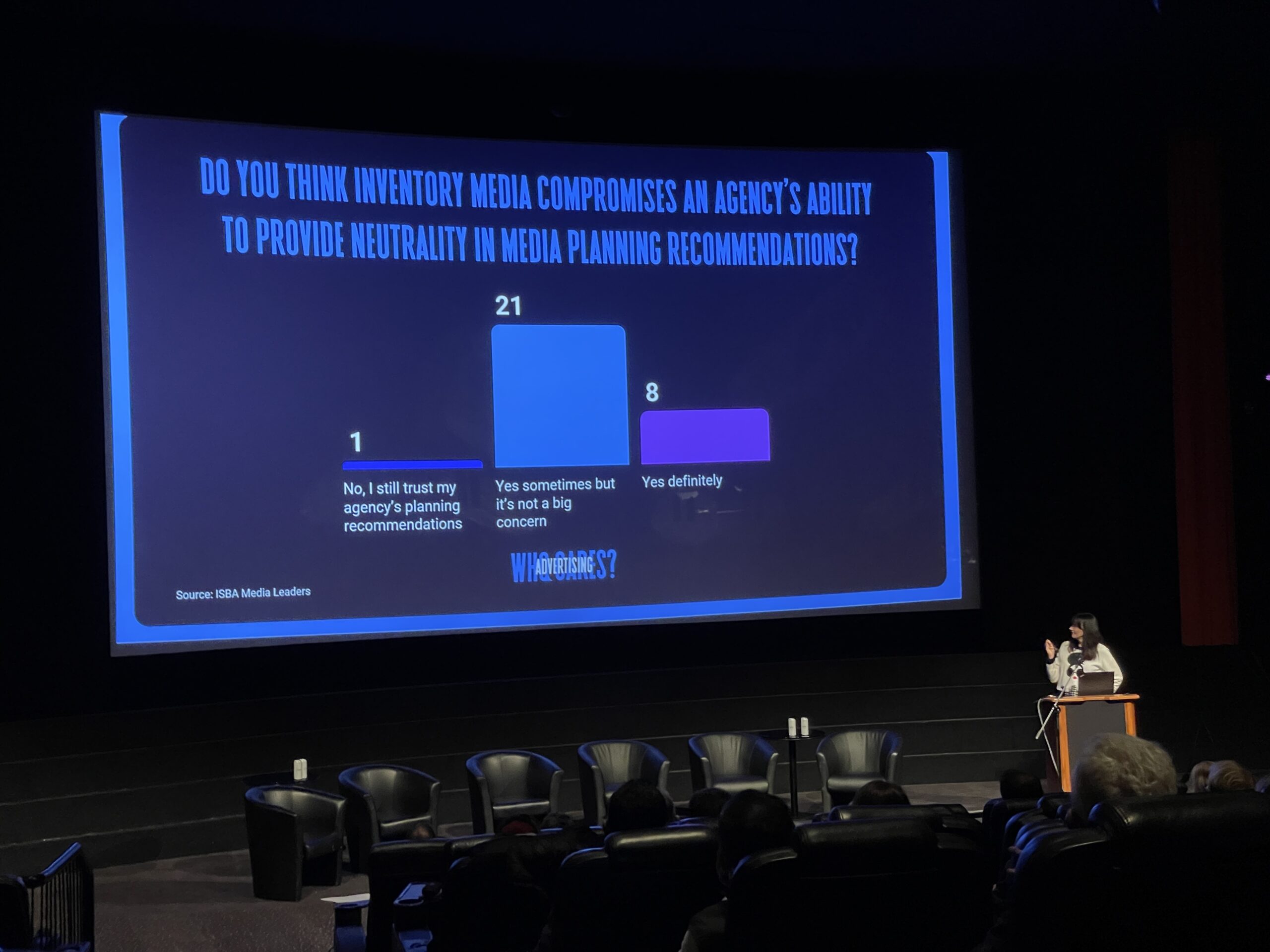 Presenting research on the subject conducted by Isba’s Media Leaders group, Biggam noted that of 30 brand marketers surveyed, just one indicated they believe principal media does not compromise an agency’s ability to provide neutral media planning recommendations, and just two indicated they felt “positive” about the practice of principal media. This compared to 15 that were neutral and 12 that were negative.